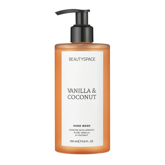 BEAUTYSPACE Keep hands fresh with our Vanilla & Coconut Hand Wash. Scented with notes of Vanilla, Coconut, Apricot and Plum, this formula gently cleanses and leaves hands feeling soft and conditioned.