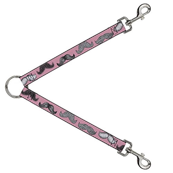 Buckle-Down Leash Splitter - Mustaches Pink Sketch - 1" Wide - 30" Length
