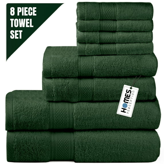 Hero image 0 of HOMES PERCEPTION 8 Pack Hunter Green Bath Towels Set, 2 Bath, 2 Hand Towels and 4 Wash Cloths, Bath Towels on Clearance, Hunter Green, 0 of 7