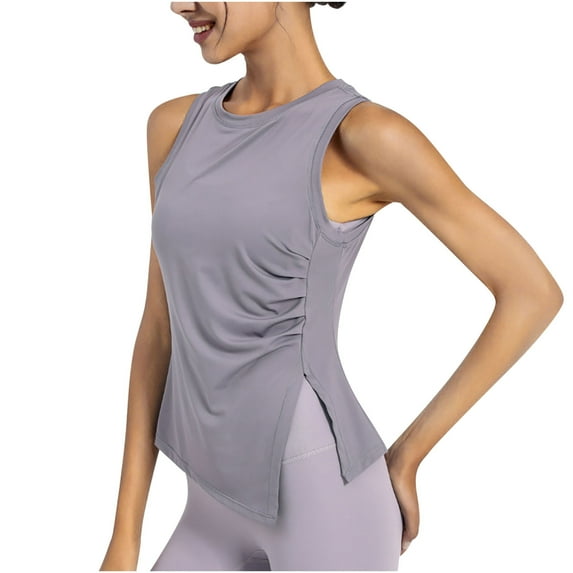 vdgthytj Womens Athletic Tank Tops Summer Crew Neck Solid Color Sleeveless T-Shirts Side Slit Tie Knot Ruched Blouses