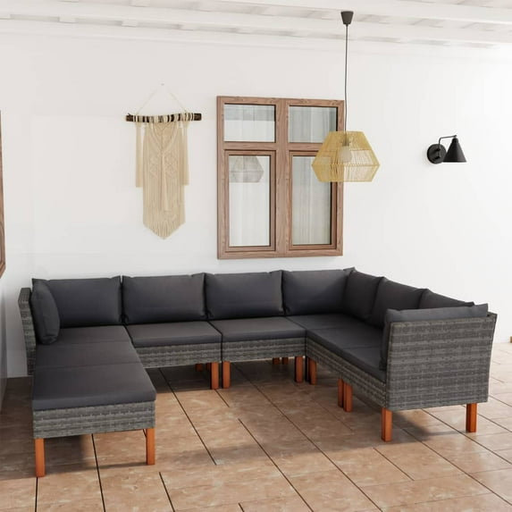 25 out of 5 Stars. 2 reviewsShipping, arrives in 3+ daysvidaXL 8 Piece Patio Lounge Set with Cushions Poly Rattan Dark Gray $446.99 Was $829.09