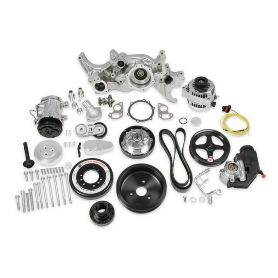 - Comprehensive Components: Includes an SD7 A/C compressor, LT1 style 150 amp alternator, Type II power steering pump with baffled reservoir, water pump, tensioner, SFI certified damper, billet crank pulley, and belt.