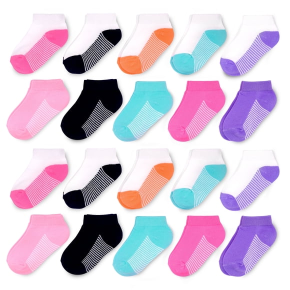 Fruit of the Loom Baby and Toddler Girls Low Cut Socks, 20-Pack