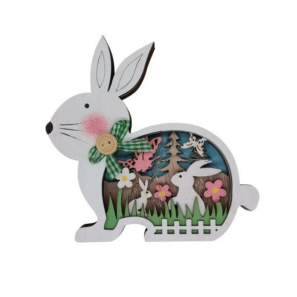 Mchoice 1 PC Easter Wooden Crafts, Painted Bunny Flowers Lighting Ornaments Handmade Thicke and Durable, Cute Cartoon Table Decoration with LED Lights for Props Layout/Festival Gift/Home Decor+$10.00 shipping