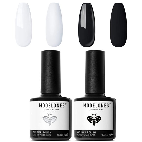 Gel Nail Polish - 15ml 2 Pc Black White Gel Polish Set Soak off LED Modelones Nail Polish Gel Kit Nail Art Manicure Salon DIY at Home for Gift,Valentine's Day Gift for Easter