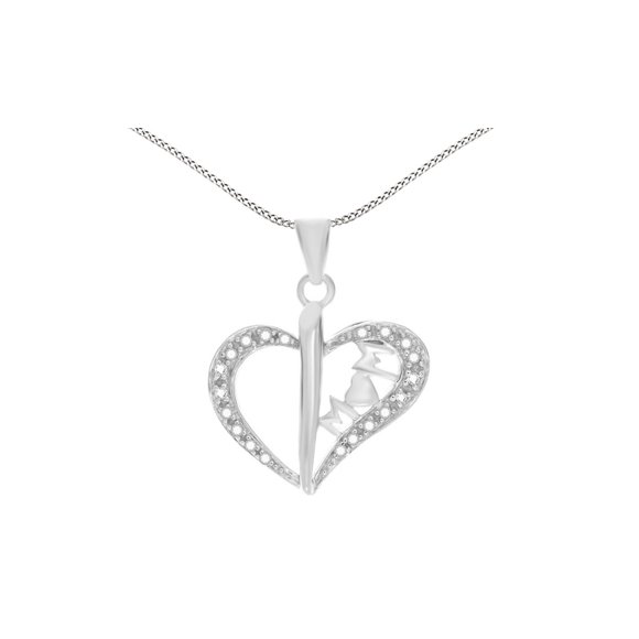 White Natural Diamond Mom & Baby Pendant Necklace in 14k White Gold Over Sterling Silver (0.03 Ct)3+ day shipping