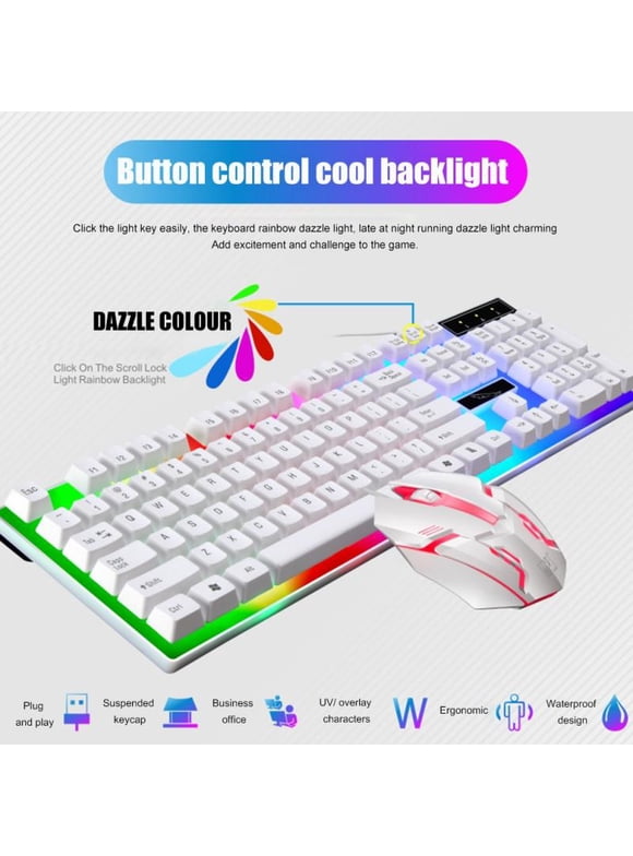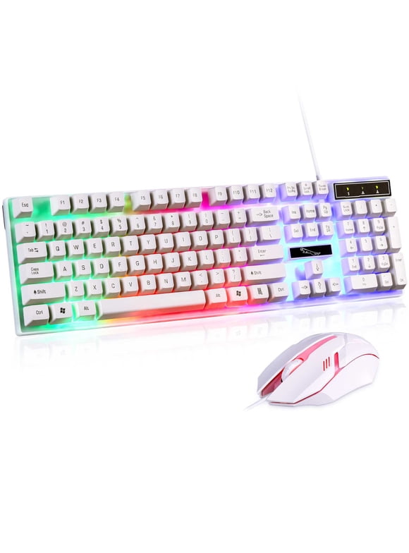 Gaming Keyboard and Mouse Combo, LED Rainbow Backlit Keyboard with 104 Key Computer PC Gaming Keyboard for PC/Laptop(Black)3+ day shipping