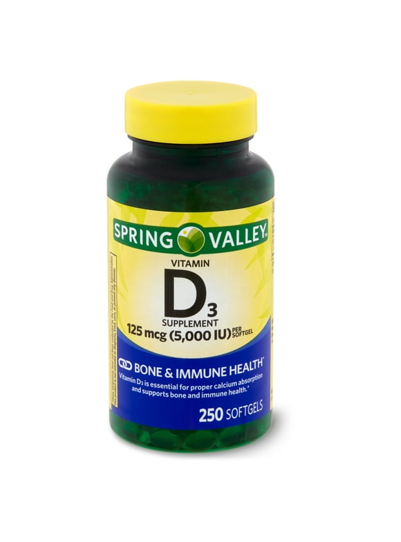 Spring Valley Vitamin D3 Softgels, 125 mcg per Softgel, 5,000 IU, 250 Count4.7 out of 5 Stars. 1349 reviews