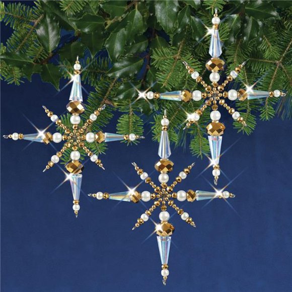 Solid Oak NCHBOK-019 Nostalgic Christmas Beaded Crystal Ornament Kit - Crystal & Gold Christmas Stars