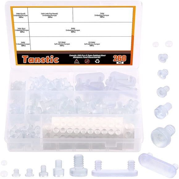 260Pcs Glass Table Top Bumpers Set, 0.19'' 0.23'' 0.27'' 0.31'' 0.39'' 2 Types Non Adhesive and Adhesive Clear Rubber Table Glass Bumper with Stem Door Bumpers Furniture Anti Slip Pads3+ day shipping