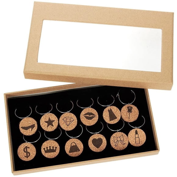 Wine Glass Charms 12-Piece Wine Charm Drink Markers, Wine Glass Tags, Natural Cork Wine Charms - Fun Assorted Designs for Bachelorette Parties, Birthday, Gatherings, Reunions, 1 x 0.19 inches