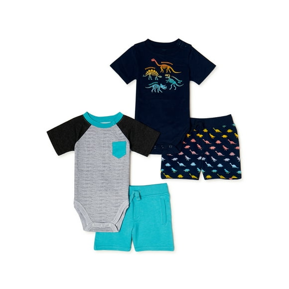 Garanimals Baby Boy Short Sleeve Bodysuit and Short Outfit Set, 4-Pack, Sizes 0-24 Months