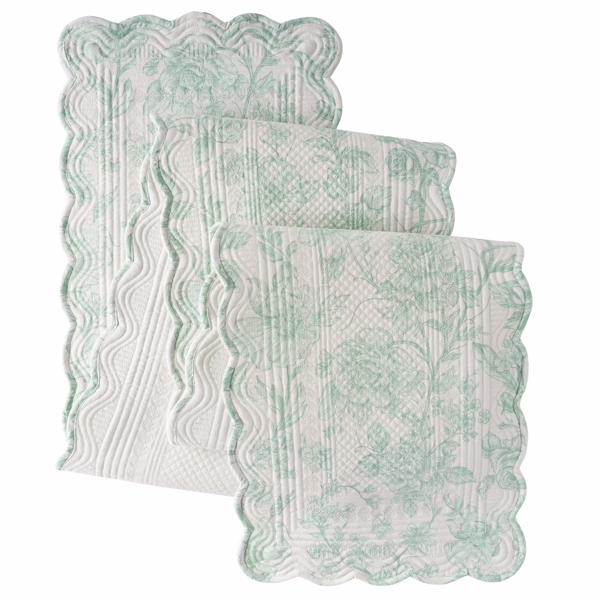 The Pioneer Woman Agatha Quilted Fabric Table Runner, Green & White, 14" x 90"