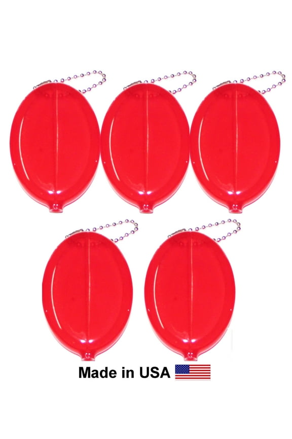 Oval Squeeze Coin Purses 5 Red | Multi-Purpose uses | Holds change & small items | Made in USA