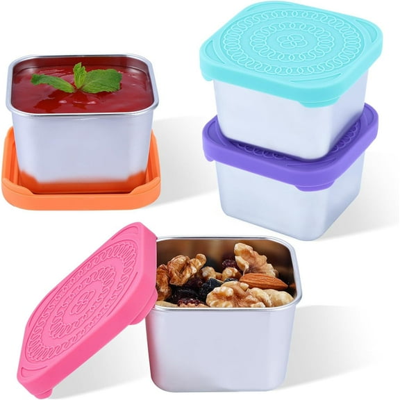 Ikoopy 3/4Pcs Stainless Steel Snack Containers Including Silicone Lids 6oz Snack Boxes Leakproof Stainless Steel Snack Container Dishwasher Safe Food Storage Box for Daycare School Office Travel